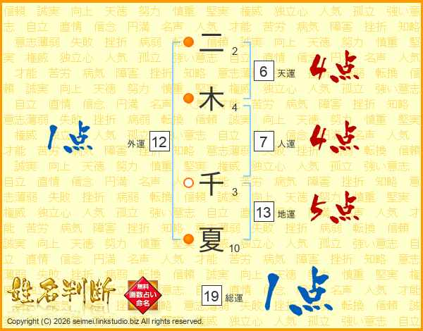 二木千夏さんの人運は7画の4点!