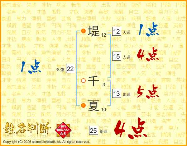 堤千夏さんの総運は25画の4点!