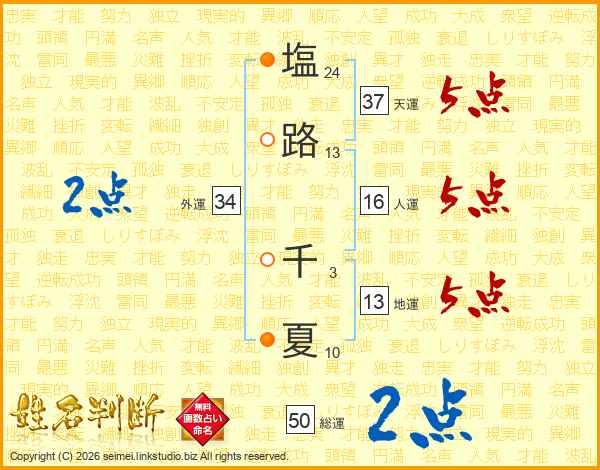 塩路千夏さんの外運は34画の2点!