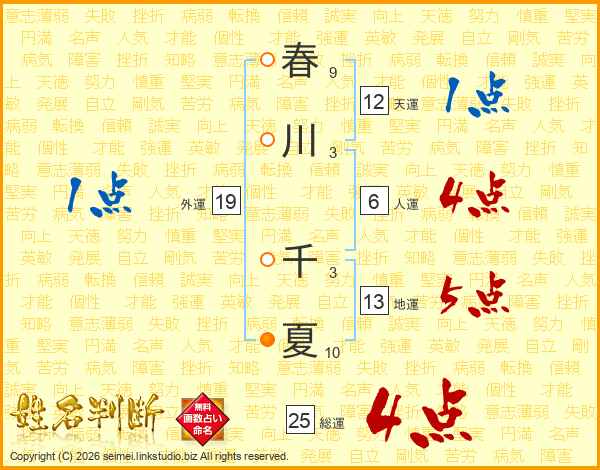 春川千夏さんの外運は19画の1点!