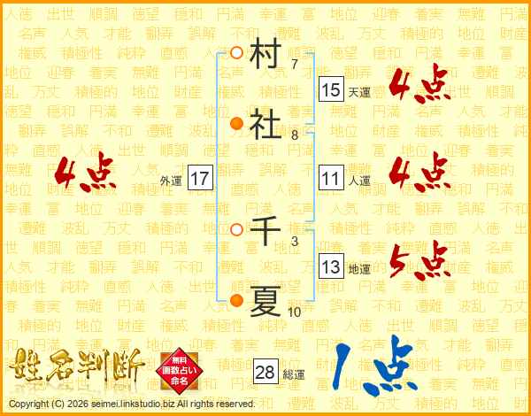 村社千夏さんの外運は17画の4点!