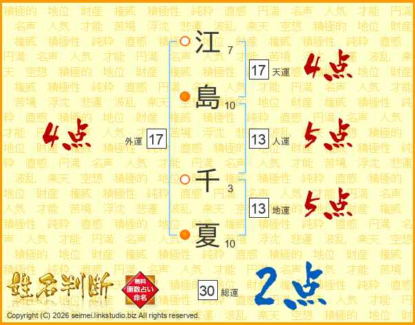 江島千夏さんの外運は17画の4点!