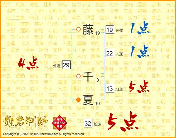 藤千夏さんの総運は32画の5点!