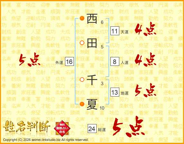 西田千夏さんの外運は16画の5点!