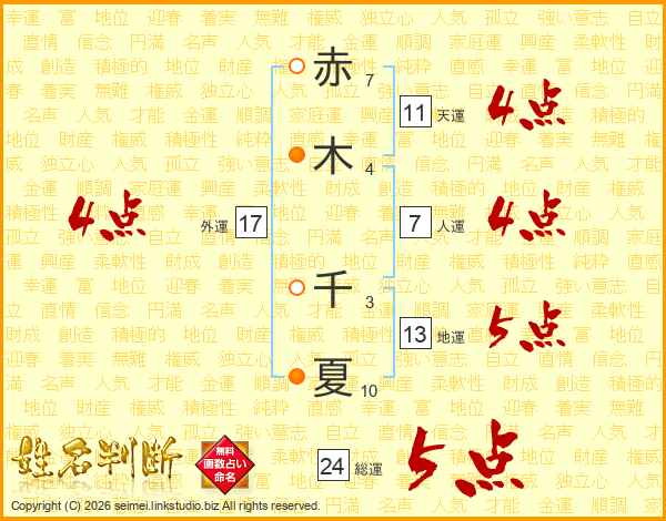 赤木千夏さんの外運は17画の4点!