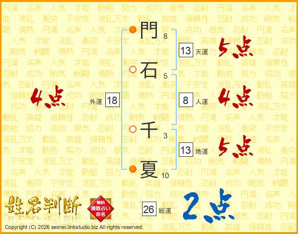 門(8画)石(5画) 千(3画)夏(10画)