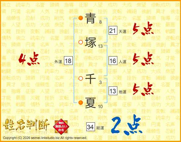 青塚千夏さんの天運は21画の5点!