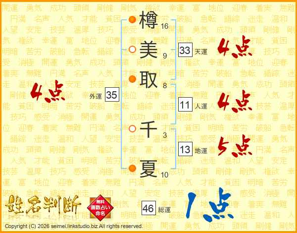樽美取千夏さんの総運は46画の1点!
