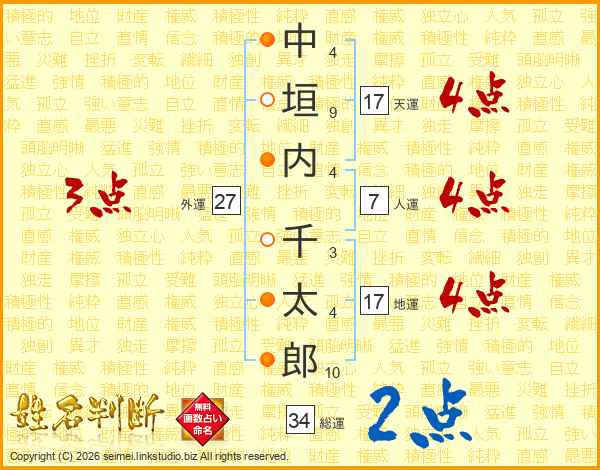 中垣内千太郎さんの総運は34画の2点!