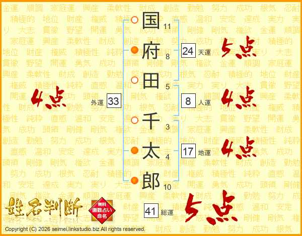 国府田千太郎さんの総運は41画の5点!