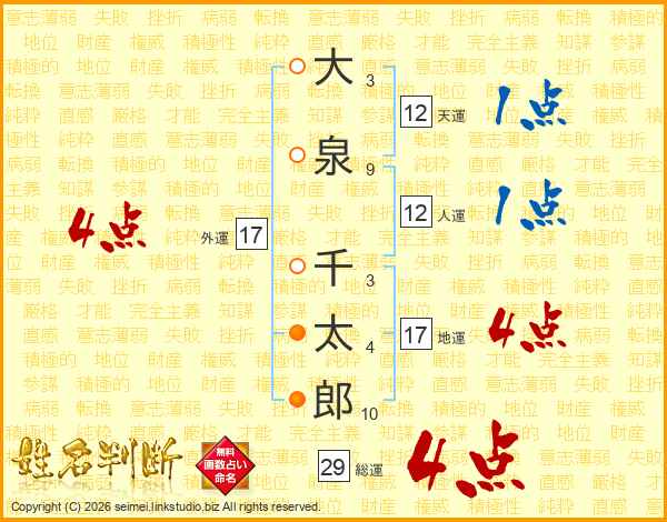 大泉千太郎さんの総運は29画の4点!