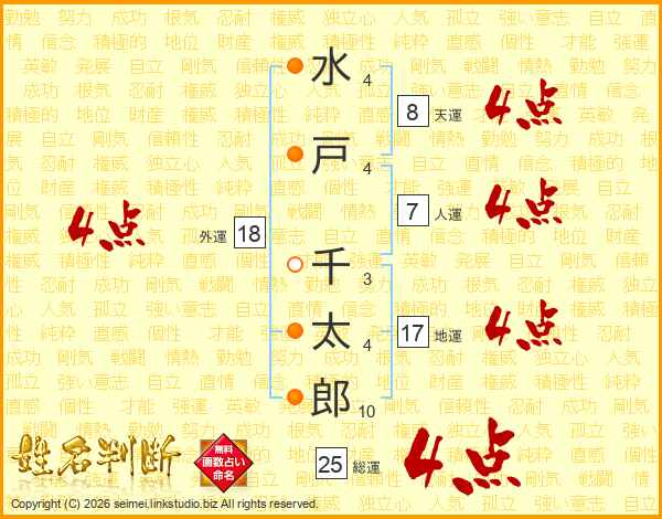 水戸千太郎さんの総運は25画の4点!