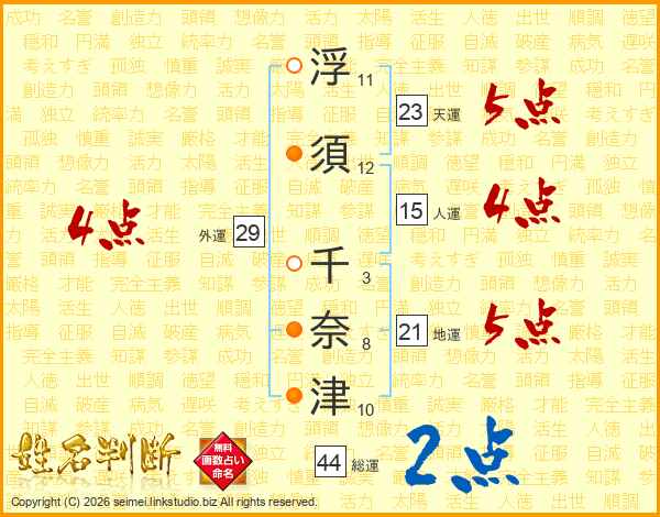 浮須千奈津さんの総運は44画の2点!