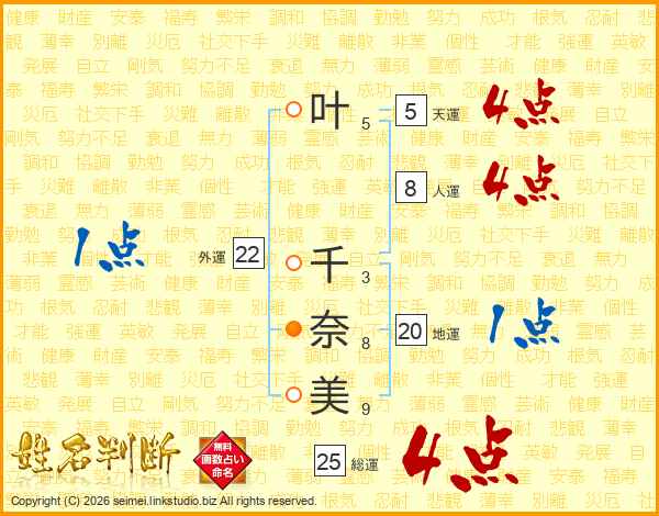 叶千奈美さんの総運は25画の4点!