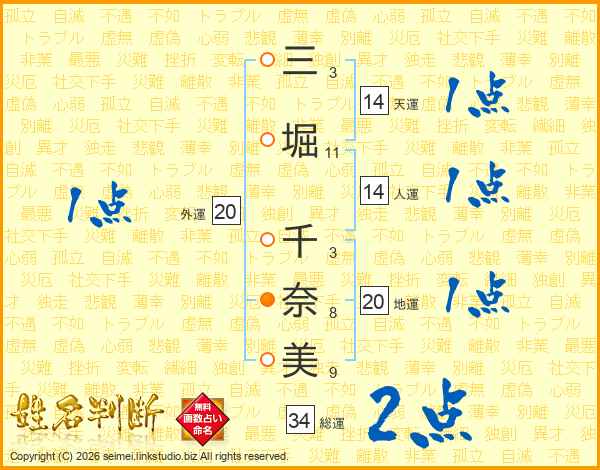 三堀千奈美さんの天運は14画の1点!