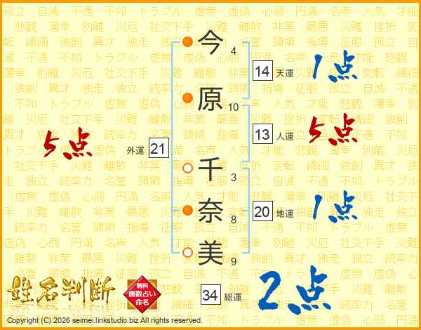 今原千奈美さんの外運は21画の5点!