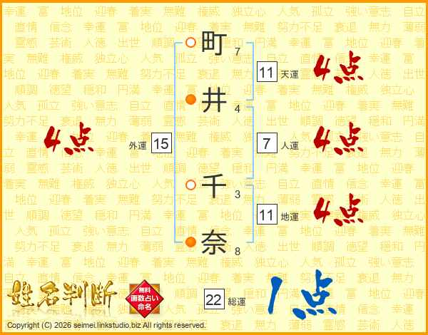 町井千奈さんの地運は11画の4点!