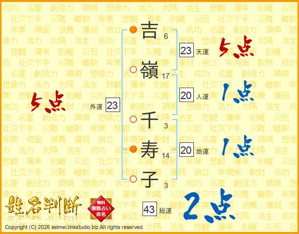 吉嶺千寿子さんの天運は23画の5点!