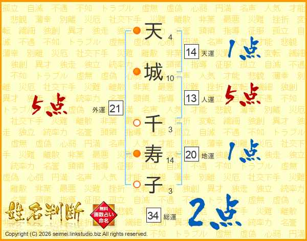 天城千寿子さんの外運は21画の5点!