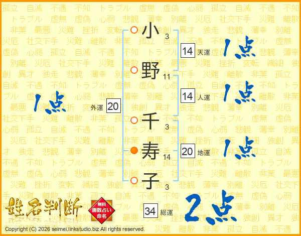 小(3画)野(11画) 千(3画)寿(14画)子(3画)