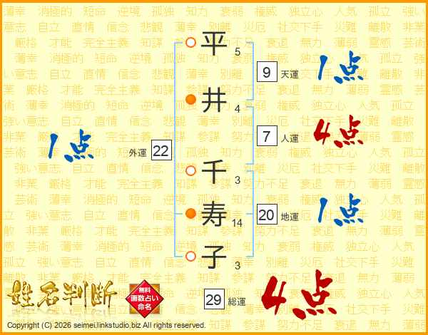 平(5画)井(4画) 千(3画)寿(14画)子(3画)