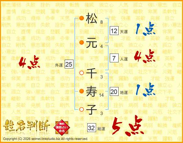 松元千寿子さんの総運は32画の5点!