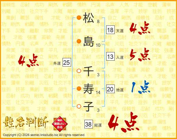 松(8画)島(10画) 千(3画)寿(14画)子(3画)