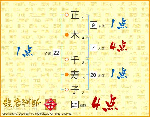 正木千寿子さんの総運は29画の4点!