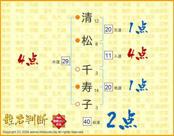清松千寿子さんの総運は40画の2点!
