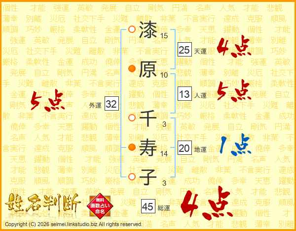 漆原千寿子さんの総運は45画の4点!