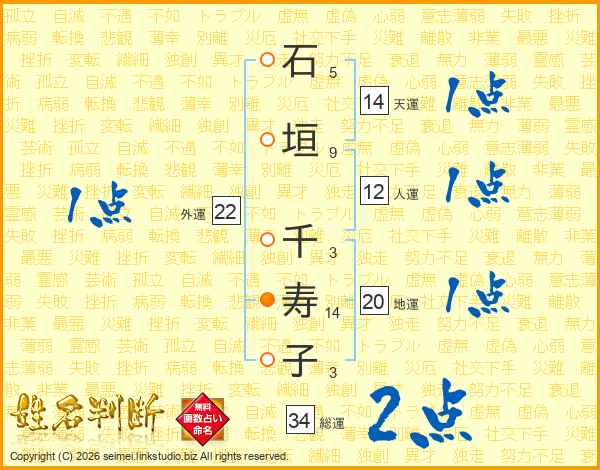石垣千寿子さんの天運は14画の1点!