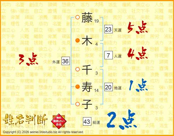 藤木千寿子さんの外運は36画の3点!