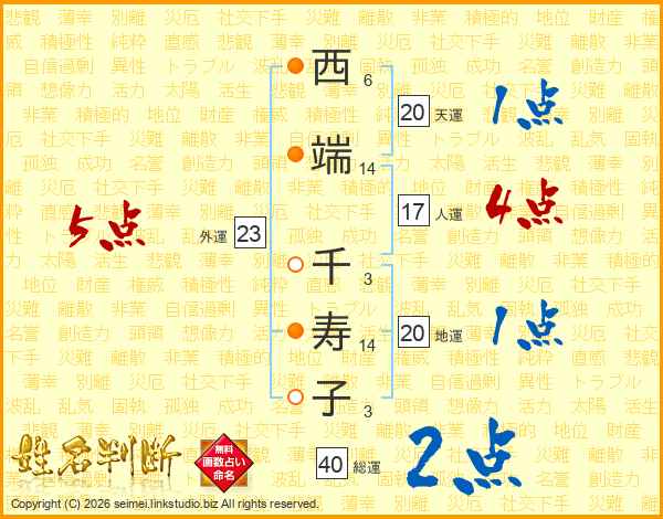 西端千寿子さんの総運は40画の2点!