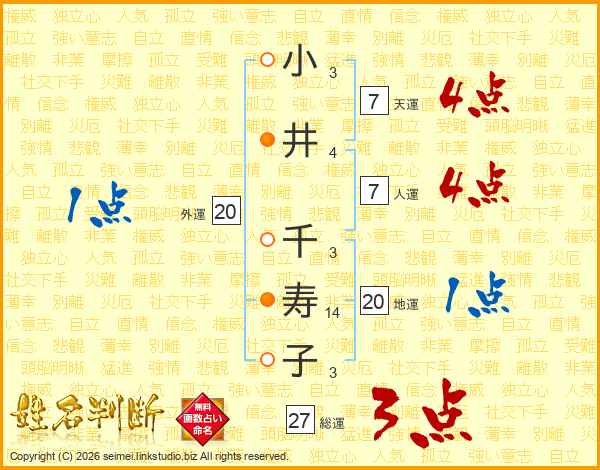 小(3画)井(4画) 千(3画)寿(14画)子(3画)