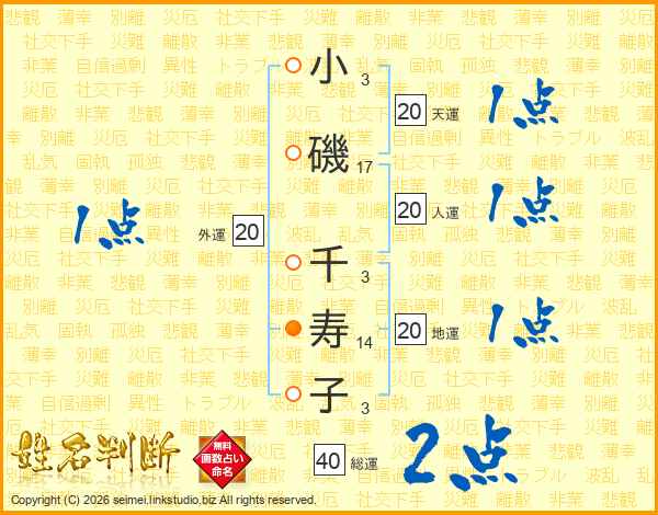 小(3画)磯(17画) 千(3画)寿(14画)子(3画)