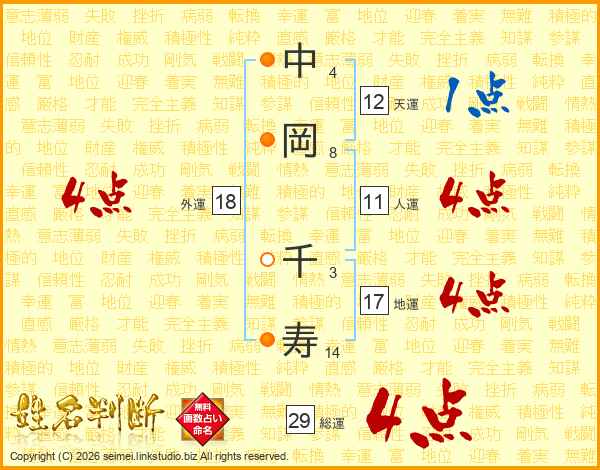中岡千寿さんの外運は18画の4点!