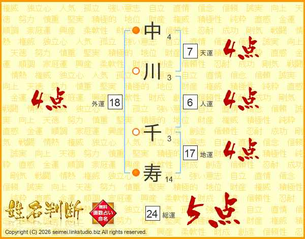 中川千寿さんの外運は18画の4点!