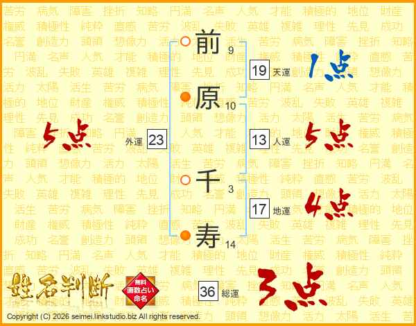 前原千寿さんの総運は36画の3点!