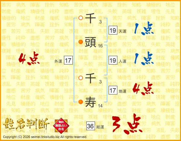 千頭千寿さんの総運は36画の3点!