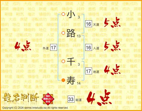 小路千寿さんの総運は33画の4点!