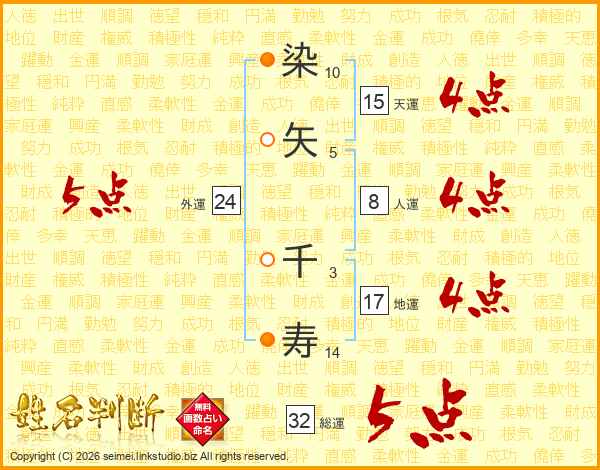 染矢千寿さんの総運は32画の5点!
