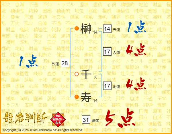 榊千寿さんの天運は14画の1点!