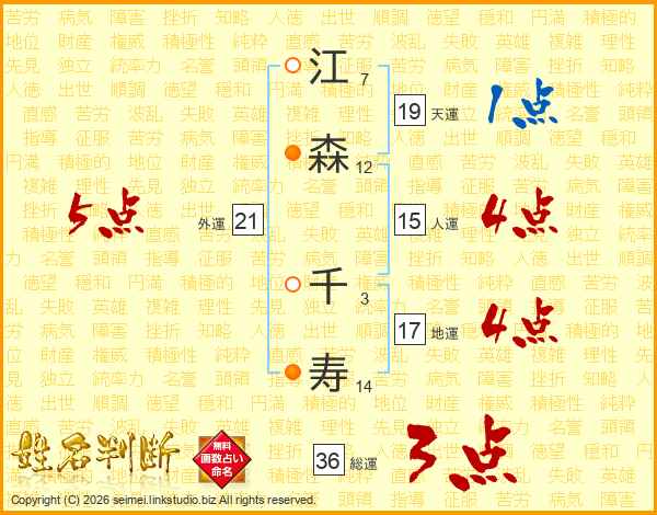 江森千寿さんの総運は36画の3点!