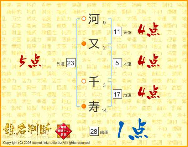 河又千寿さんの外運は23画の5点!