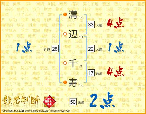 溝(14画)辺(19画) 千(3画)寿(14画)