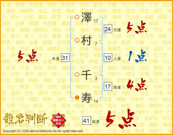 澤村千寿さんの総運は41画の5点!