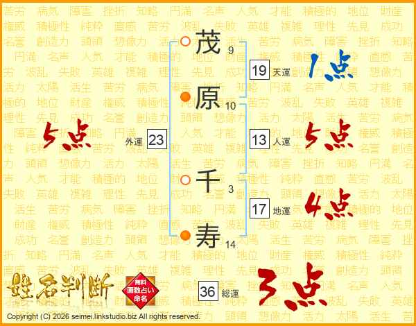 茂原千寿さんの人運は13画の5点!