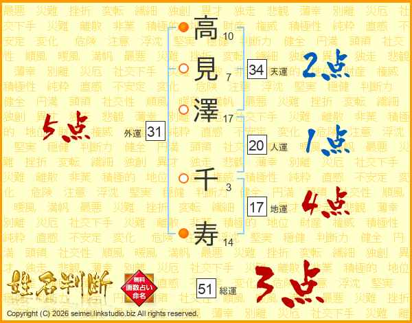 高見澤千寿さんの外運は31画の5点!