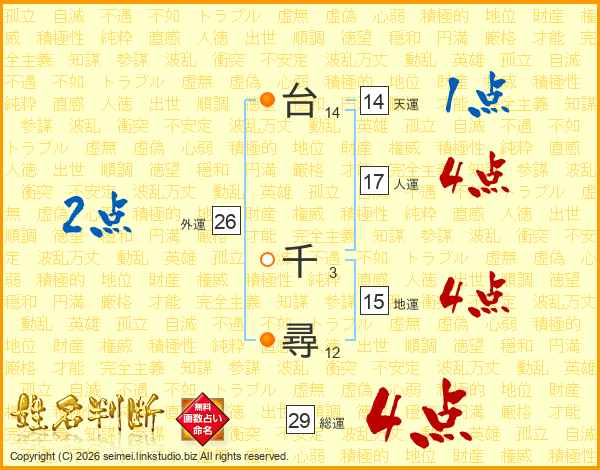 台千尋さんの総運は29画の4点!