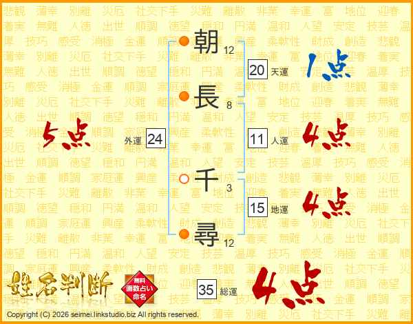 朝長千尋さんの総運は35画の4点!